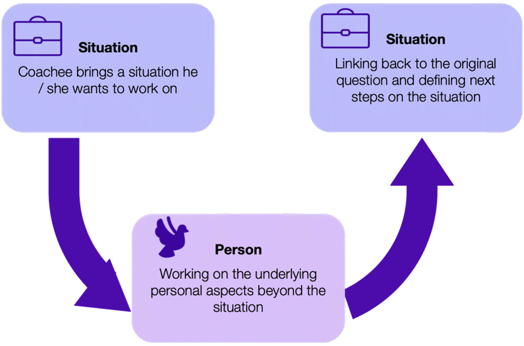 Our coaching approach lifts the situational issue to the personal level.