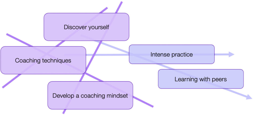 On your journey to becoming a coach, you will be coached extensively. This is your chance to explore the questions you have always wanted to work on. Your great peers will coach you, supported by the best supervisors.