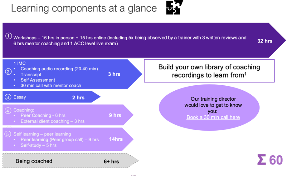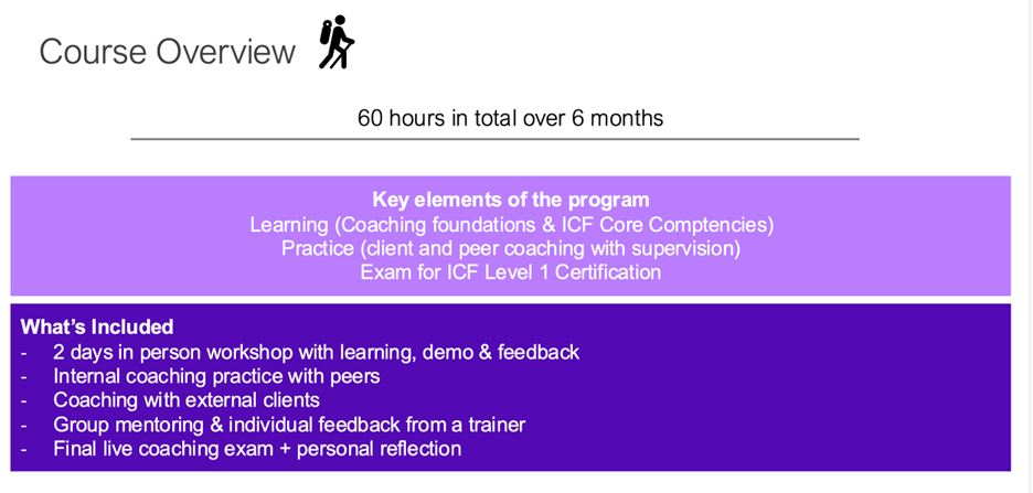 • This course will provide you with an ACC level exam but you will venture into PCC skills throughout the course